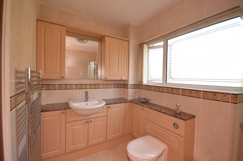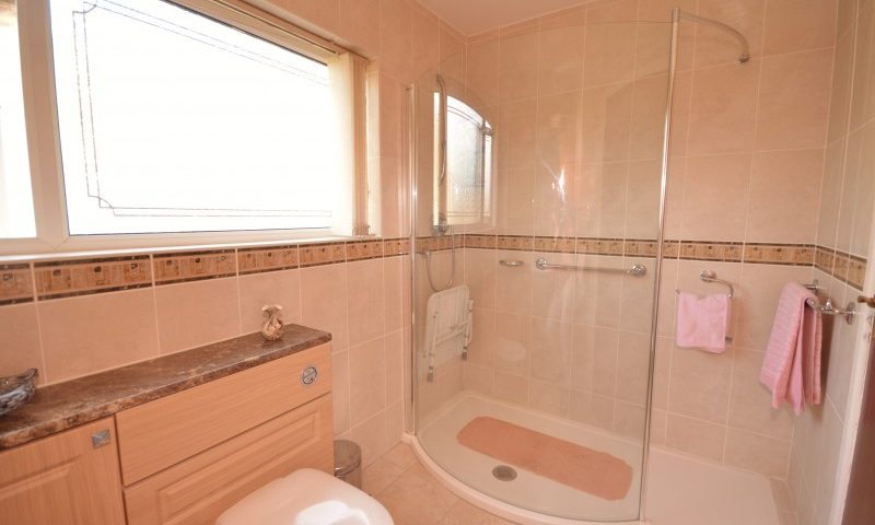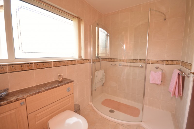 BATHROOM: 9’00 5’08 Modern fitted units, fully tiled walls and flooring, double glazed window to side, double shower, fitted toilet and fitted sink.