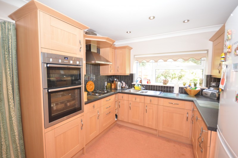 KITCHEN:13’07 x 9’05 Modern fitted kitchen with fitted base and wall units, half tiled half painted walls, tiled floor with carpet laid over the top, double glazed window to rear aspect and side access leading out to the garden.