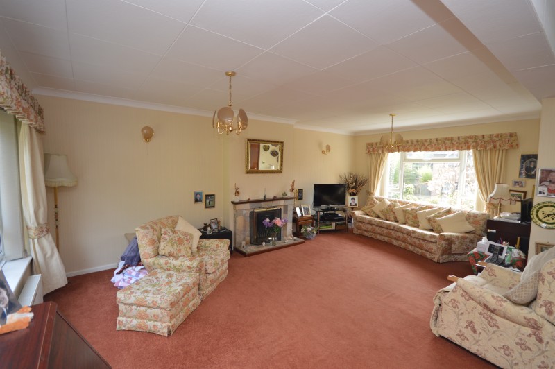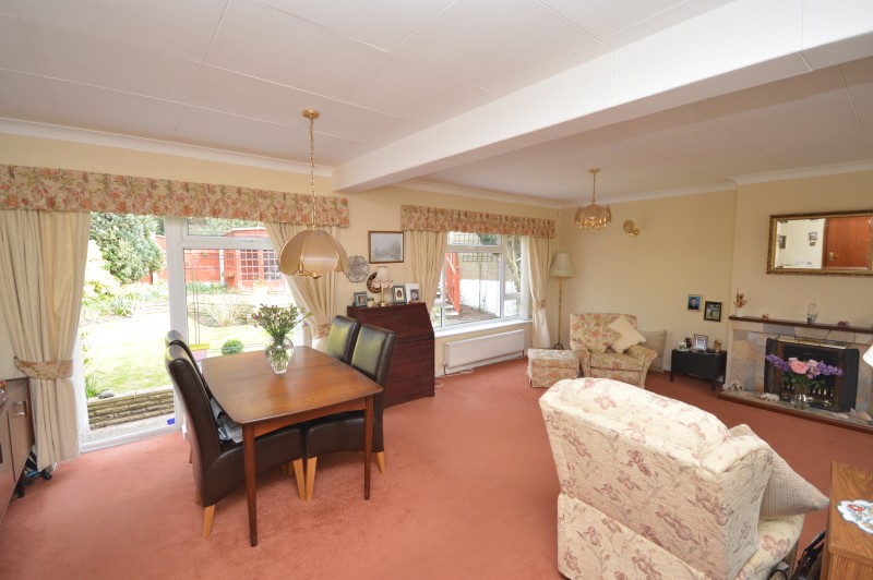 LOUNGE: 21’11 x 20’11 >13’07 Fitted carpet, papered walls, double glazed window to front and rear aspect with double glazed door leading to rear garden.