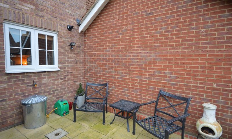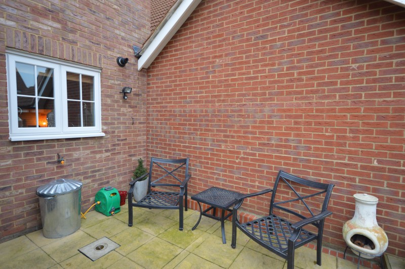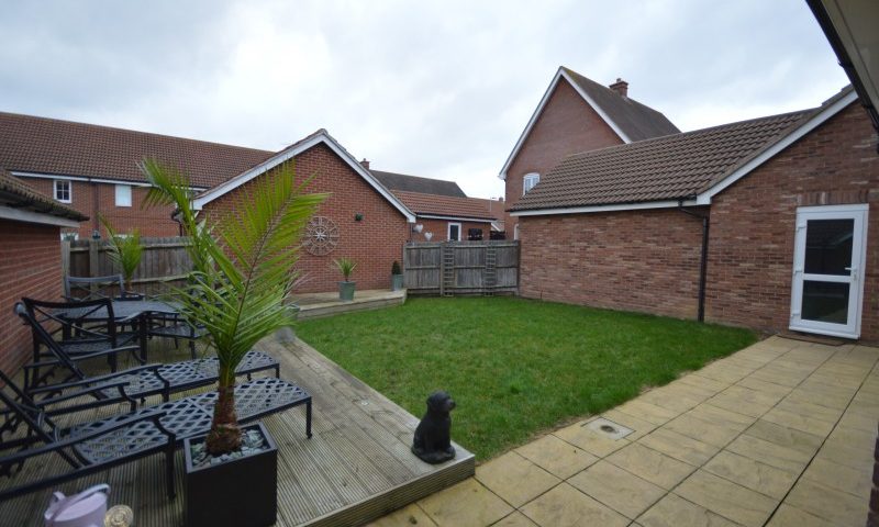 Access to the rear garden is via the garage, further parking for 2 cars on the front drive. South West facing garden which is laid to lawn with a decked area