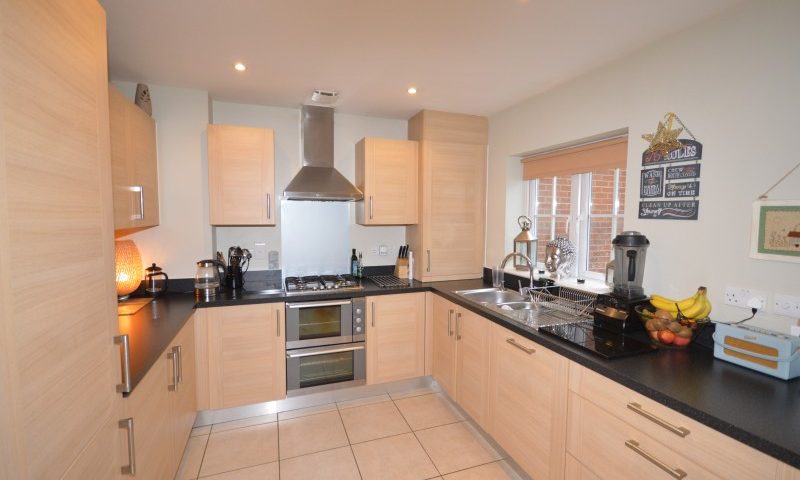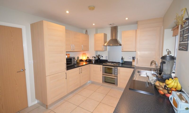 Fitted wall and base units, integrated dishwasher, built-in double oven, four ring gas hob with chrome extractor, integrated fridge and freezer, power points, television point, double glazed window to rear aspect.